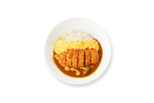 平飼い卵のスクランブルエッグ、プラントベースのカツを豪快にカレーにのせました。フレキシタリアンも楽しめる、ボリューム満点の一品です。