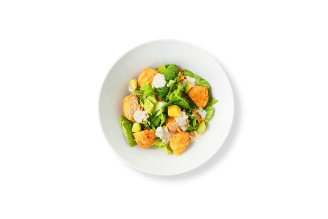 植物由来の唐揚げとプラントベースのソースが相性抜群のシーザーサラダ。