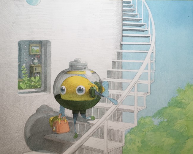 『たまごのはなし』(ブロンズ新社)がブラチスラバ世界絵本原画展の金牌を受賞して、一躍注目の的となった絵本作家・しおたにまみこさん。4作目となる今回の作品は、水の外の小学校に通うさかなくんが主人公です。
