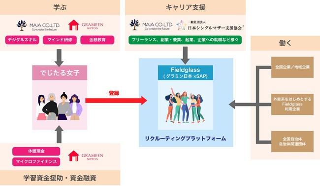 一般社団法人グラミン日本(所在地:東京都中央区、理事長:百野公裕、以下「グラミン日本」)と株式会社MAIA(本社:東京都港区、代表取締役:月田有香、以下「MAIA」)と一般社団法人日本シングルマザー支援協会(本社:神奈川県横浜市、代表理事:江成道子、以下「日本シングルマザー支援協会」)は、コロナ禍で生活困窮に追いやられているシングルマザーをはじめとした女性にむけ、マイクロファイナンスによる教育費用、デジタル・ビジネススキル研修、就労・キャリア支援を一貫して提供するプログラム『でじたる女子』を5月11日(水)より新たに実施、受講生募集を開始する運びとなりましたので、お知らせいたします。