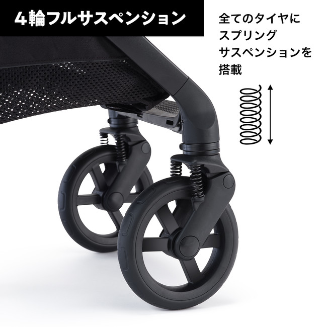 大きめのタイヤには4輪フルサスペンションを搭載しており、段差もでこぼこ道もスムーズに走行可能。