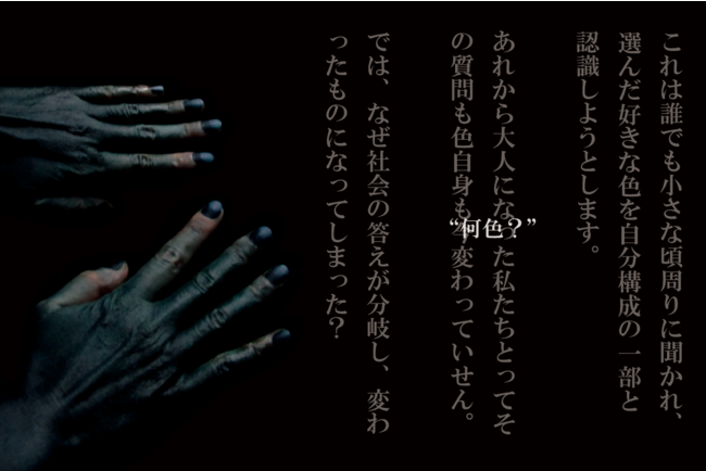 既に長年存在している有色人種に対する差別、何百年間に社会の進歩により、法律でいくら厳しい罰を与えても外見の色で生じる偏見は一度も消えることがありません。その反面、色は共通言語としても利用できるのではないかと考え、言葉には伝わらないものを伝える、What Color?の考案を始めました。