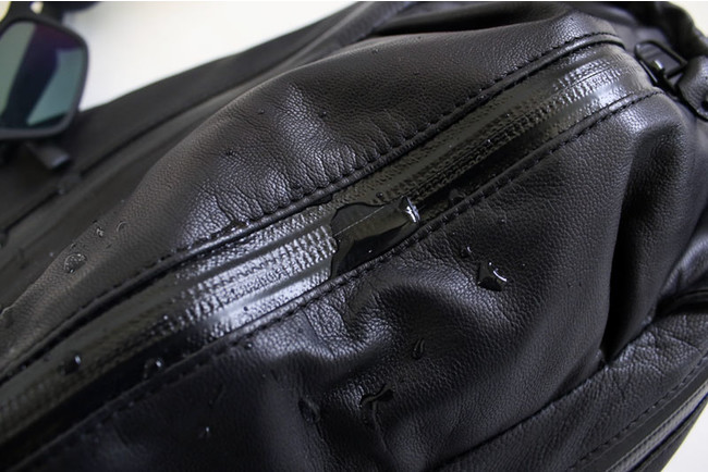 鞣し段階において革の深層部にまで防水加工を施した「Waterproof Leather」。