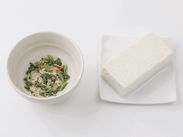 作り方はとても簡単で、「白和えの素」を少量の水で器に溶き、そこに豆腐1パック(150g)を入れ、よく混ぜ合わせるだけ。「白和えの素」にフリーズドライ化された野菜具材と調味用のごまと味噌が既に入っているので、お客様にご準備いただくのは豆腐ひとつだけ。具材の下ごしらえなどの面倒な作業も必要ありません。