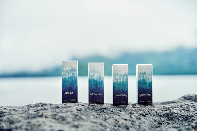 自然そのものの素材と香りによる製品づくりにこだわり、日本各地の厳選したヒノキ、クスノキなどの和木、ユズや和ハッカといった果実やハーブの100%天然精油を加え創香しています。クリエイティブディレクターに中原慎一郎氏(ランドスケーププロダクツファウンダー)、調香師に堀田龍志氏(日本香堂)、アドバイザーに谷田貝光克氏(炭焼きの会会長、木質炭化学会名誉会長ほか)を迎え、4種のオリジナルの香り「Sunrise」「Monk Tree」「Hayes Valley」「Moon Jazz」を中心に、さまざまな香りのプロダクトと、香りを楽しむためのオリジナルアイテムを展開。いずれも、日本各地のクラフトマンシップとのコラボレーションで一つ一つ丁寧に仕上げています。