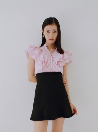 たっぷりとあしらわれたフリルが印象的な、フェミニンムード溢れるブラウス。デコルテの大胆なカッティングで今年らしいヘルシーな肌見せが叶います。
