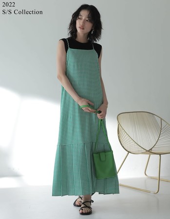 トレンドライクなギンガムチェックとドット柄は、小ぶりな柄の生地を採用。歩くたびにエレガントなシルエットを描く、マーメイドデザインで仕上げました。ツイードライクなミックス生地が魅力のキャミワンピース(画像番号9.)は、上品な見た目にも関わらずストレッチもあり、リラクシーな着心地の一品。