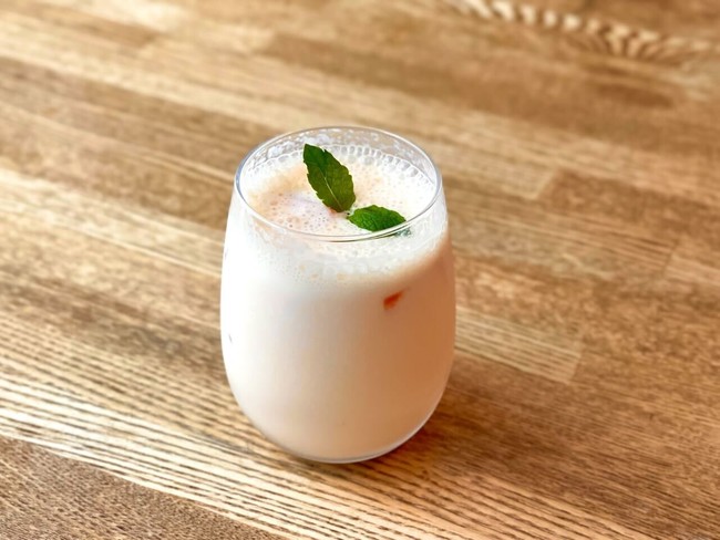 自家製のメロンジャムと果肉をトッピングし、メロンの食感も楽しめるひんやりドリンクです。