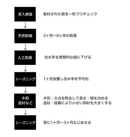 カリモクではこの木材にたくさんの工程を経て、高度な温度・湿度管理を行うことで実現しています。