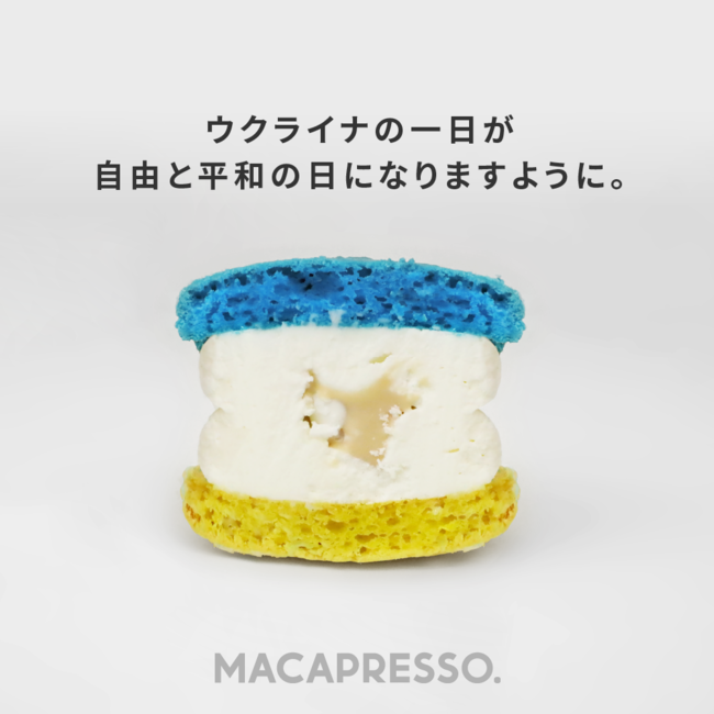 マカロン専門店「MACAPRESSO(マカプレッソ)」は、ロシアによる軍事侵攻が続くウクライナを支援するため、ウクライナ国旗の色のマカロンを3月21日(月)より各店舗で販売し、その生産量4000個が全て完売しました。