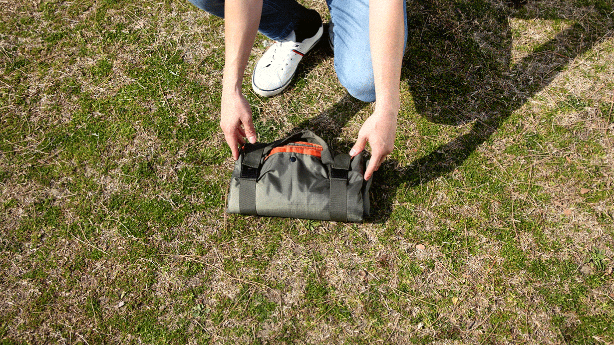 ビッグバッグをファスナーで展開する事により大人2人が座れるサイズのレジャーシートにも早変わり!