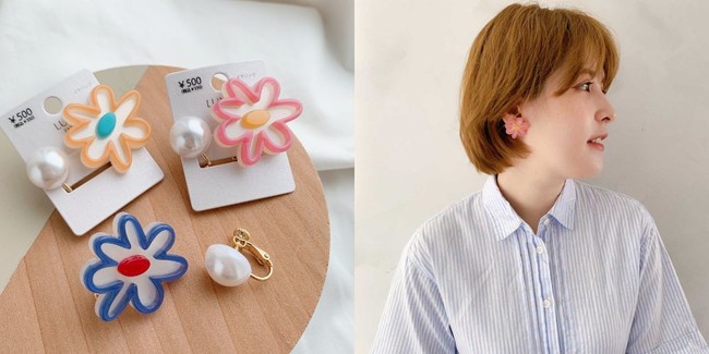 商品名:北欧風アクリルフラワー&パールイヤリング