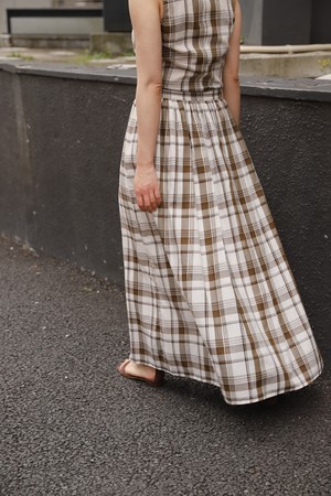 今回はどこか懐かしさを感じるチェック柄をセレクトしました。「アメリカンスリーブシャツ」と「ギャザースカート」というクラシックな2種類のアイテムをつくり、レトロすぎたり子どもっぽくなったりしないように、肌の見え方やシルエット、生地の分量などにこだわって、”トレンド”とはまた違う、”今”の空気感を感じられるデザインに落とし込みました。