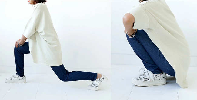 「感動スキニーレギンス」は、ウエスト・ヒップ・レッグラインがしっかりと伸びるカットソー素材を採用。すぐれたストレッチ性でどんな動きも妨げない快適な履き心地に。立ち座りしてもラクチンなストレッチ性で、アクティブなデイリーユースにも最適です。