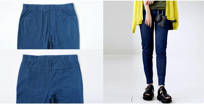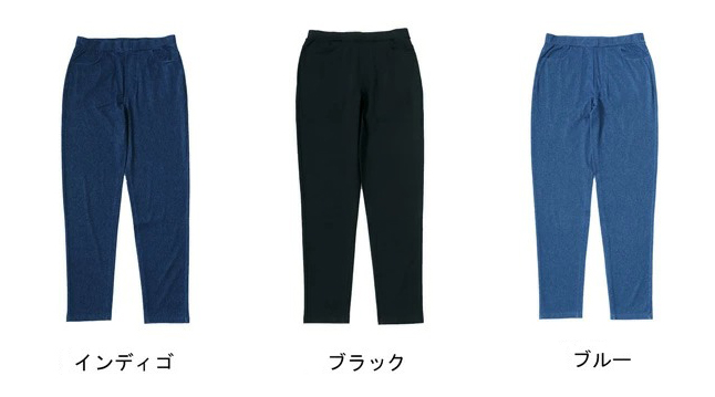 こだわりの素材と本格的なディテールで美脚を叶えてくれる「感動スキニーレギンス」のカラーは、インディゴ、ブラック、ブルーの3色。一本あればいろんな着回しが楽しめます。