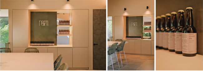 また、norm.は非日常であることにこだわって設計されています。森の中に突如現れるNYの倉庫のような外観のインパクトに、それを裏切る、ギャラリーのようなシンプルでソリッドな内装。生活の中にアートがある空間設計。まるで映画の主人公になったようなシャワールーム。洗練された家具。河口湖の凛とした空気とテラスから見渡せる水面。普段の生活から離れた非日常を前にした高揚感が「チル」をより一層引き立たせます。
