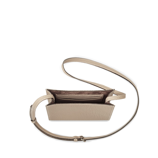 カジュアルになりがちなショルダーポシェットも、上質なシュリンクレザーで洗練された印象に。