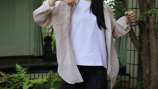 3.ベーシックなオーバーサイズシャツは着回し抜群!