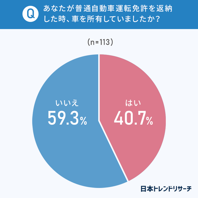 まず、普通自動車運転免許を返納した時、車を所有していたかについて聞きました。
