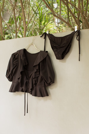キュッと結んだリボンが愛らしいアクセントを添えてくれるスイムウェア。