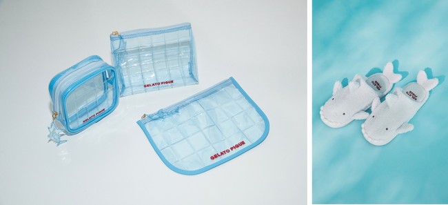 優しい表情のシャークをモチーフにしたルームシューズや、水辺のレジャーでも活躍するクリア素材が涼しげなポーチなどの雑貨も、豊富にラインアップしています。
