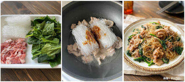 麺を別に茹でる手間を省き、フライパンひとつで麺を茹でながら味付けまで完成させる料理法。パスタだけでなく、春雨やマカロニなどを使った“別茹で不要”のレシピも人気を集めた。