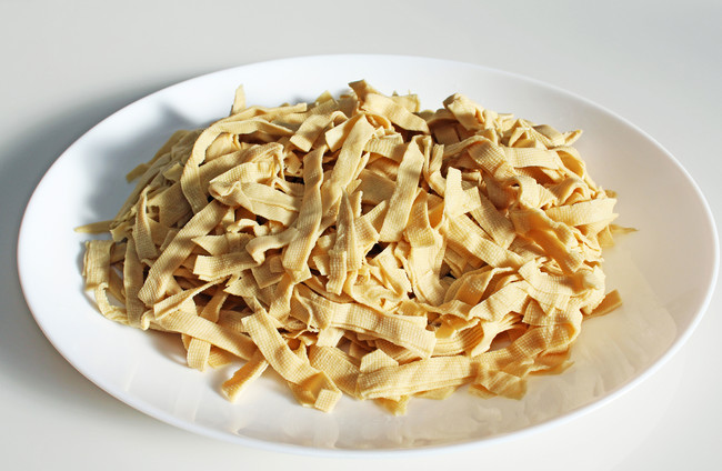 豆腐に圧力をかけて脱水したもので中国及び台湾で広く使われている。低糖質で高たんぱくなヘルシー食材として日本でもヒットし、コンビニやスーパーの惣菜でも並び始め、注目が集まっている。