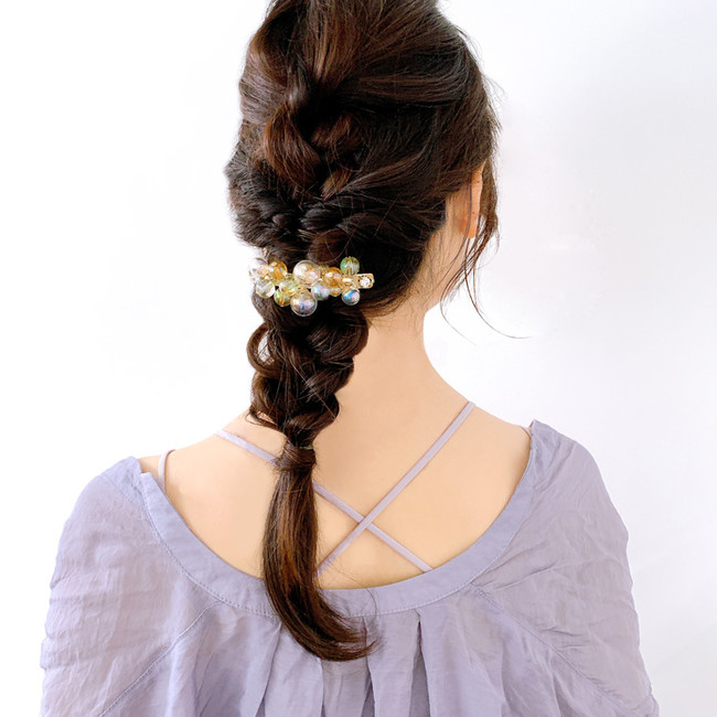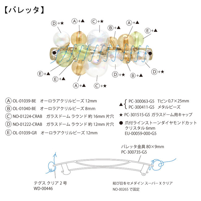 お好みの大きさのビーズをバレッタにテグスで編みつけて完成!