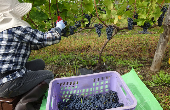 「多田ワイナリー」は、農園で野菜作りをおこなっていた代表・多田氏が、人と人との偶然の出会いが重なって2007年よりピノ・ノワール品種のブドウ作りをスタート。栽培には化学肥料は一切使用せず、有機質肥料や微生物資材などを少量使用しているほか、除草剤は一切使用せず、すべて手作業で除草や草刈りをおこない、農薬の使用も最低限に抑えるなど大切にブドウの木を育てています。ワイン造りは、実は"7~8 割が農業"と言われるほど、畑での仕事が大きなウエイトを占めており、代々農業と向き合ってきた多田氏の、徹底したワイン用ブドウ造りが、他にはない味わいを生みだしています。