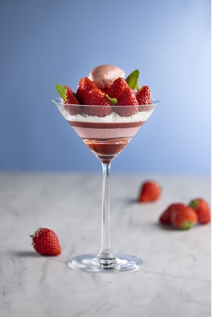 いちごリキュールを効かせたフォトジェニックな大人のパルフェ。