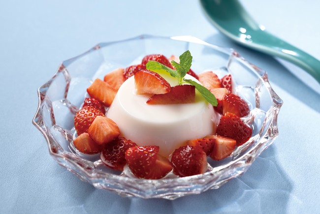 なめらかな杏仁豆腐と甘酸っぱい夏いちごのコラボレーション。