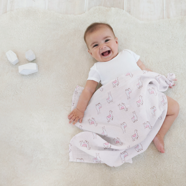柔らかなピンクをベースに描かれた愛らしいラマと楽しい気分にさせてくれる虹。赤ちゃんを楽しい夢の世界へ連れて行ってくれること間違いなしのチャーミングでスイートなコレクションです。