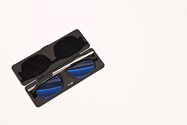 常識破りの薄型仕様で、かけている最中の軽さと持ち運びの快適さを実現しています。