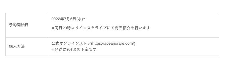 7/6(金)より公式オンラインストアにて受注受付