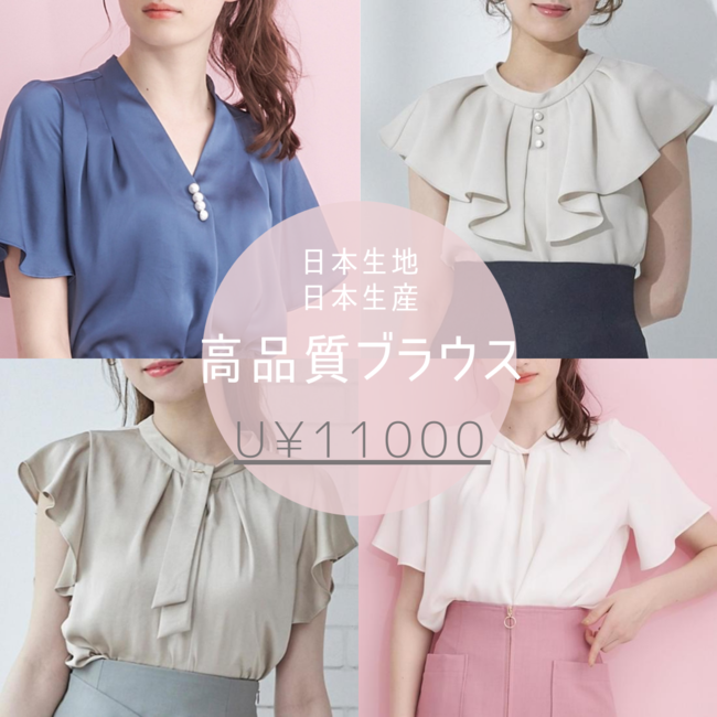 日本生地、日本生産にこだわった高品質ブラウスは、着回しの効く汎用性からも