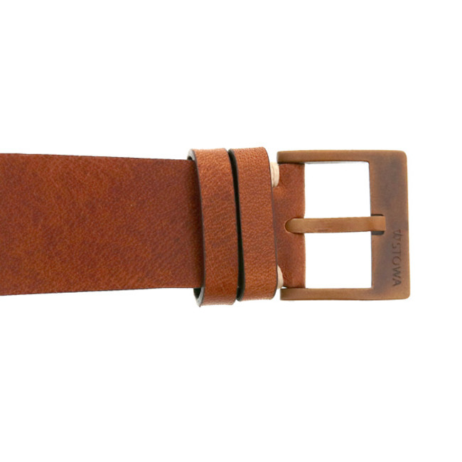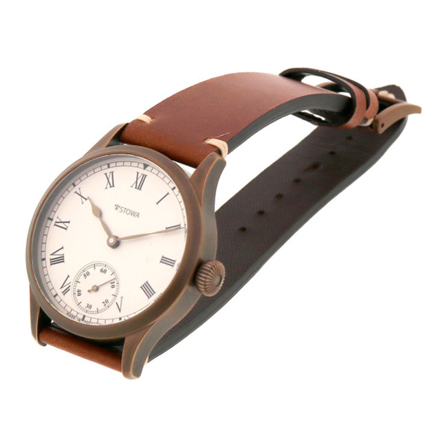 手縫いのステッチを施したハンドメイドのストラップはブロンズケースの味わいを一層引き立てるデザインとなっています。