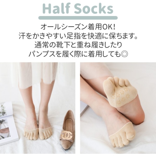 足指ソックス ≪全4種類≫ フリーサイズ ハーフソックス パッド付 滑り止め付き クッション 足指靴下 フットカバー 夏 レディース【gi-SK-002-1】