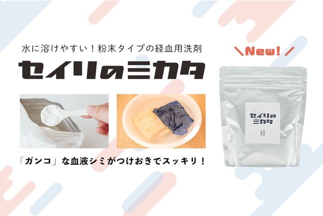 「生理中の経血による下着汚れで困っていますが、どうにかなりませんか?」という声に応えて、自身も生理に悩む女性スタッフが企画した、 経血汚れをしっかり落とすつけおき専用洗剤「セイリのミカタ 経血用洗剤」と、ナプキンがずれにくくぴったりフィットするハンモック構造の「セイリのミカタ サニタリーショーツ」。