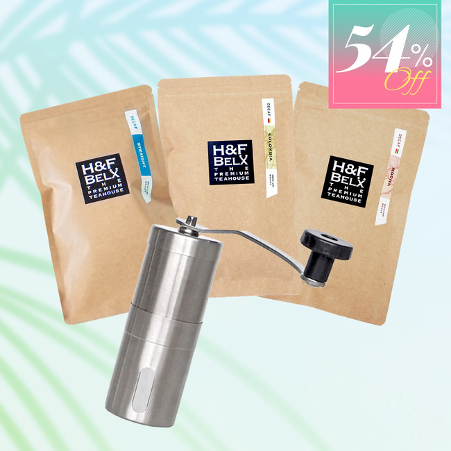 カフェイン0.00gのデカフェインコーヒー豆とコーヒーミルをセットにした福袋