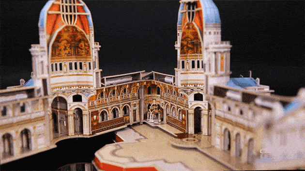 内部まで再現しているので完成後に左右を開くと、建築物の内装まで鑑賞でます。