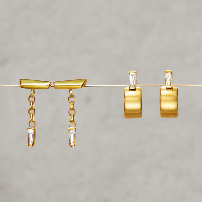 スライドするパーツが着ける瞬間の煩わしさを減らし心にフィットするつけ心地とシームレスなデザインを叶えたピアス。