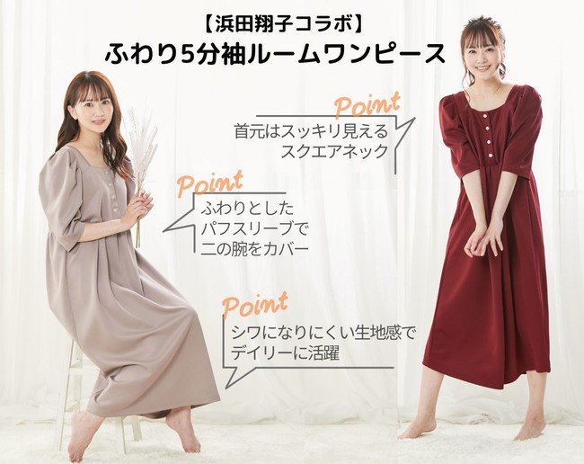 商品名:【浜田翔子コラボ】ふわり5分袖ルームワンピース(プラスチックボタン仕様)
