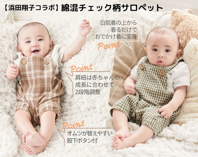 商品名:【浜田翔子コラボ】綿混チェック柄サロペット(ベビー服・子供服 男の子・女の子)