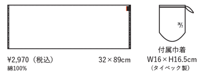 32cm×89cmの絶妙なサイズが心地よいタオルです。