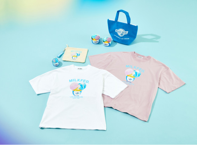 ガーリーストリートを提案するファッションブランドMILKFED.(ミルクフェド)は、沖縄育ちの大人気アイスメーカー「BLUE SEAL(ブルーシール)」とのコラボレーションアイテムを7/15(金)よりリリース致します。