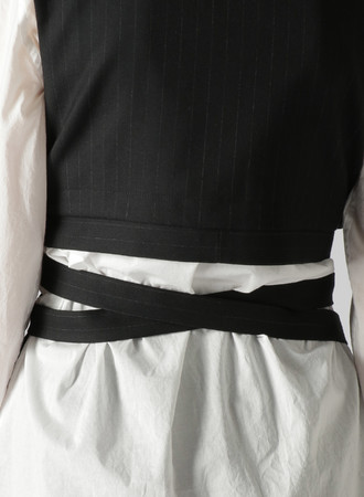 他にも同素材によるW前デザインのロングベルト・ジレも登場。GILET 44,000 yen