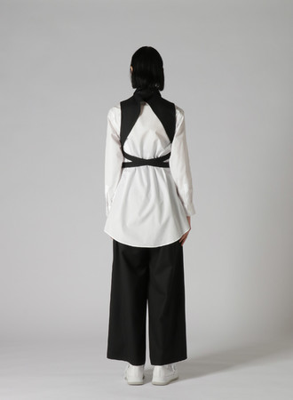 GILET 41,800 yen BLOUSE 72,600 yen PANTS 46,200 yen SHOES 77,000 yen(8月発売)