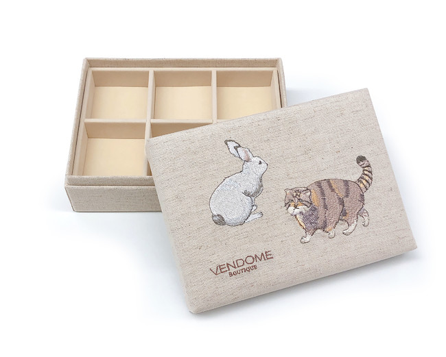 「あさひやま "もっと夢" 基金」応援企画1周年の感謝を込めて、7月15日より税込55,000円以上お買い上げの方へ、エゾユキウサギとマヌルネコのスケッチ画を刺繍したオリジナルコレクションボックスをプレゼントいたします。