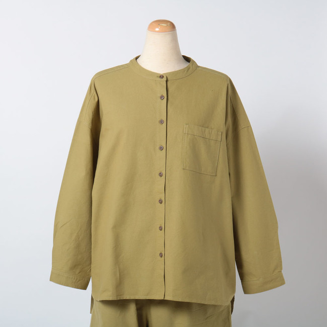 トレンドのボリュームと丈で、パンツ、スカートにもすっきりと合わせられるカジュアルシャツです。やわらかく仕上げたオックス生地を使用しています。前開きなので羽織としても活用できます。