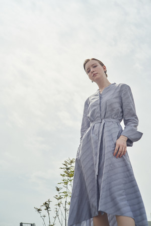 ― 小円織物さんの特殊生地”影織コットン”を使用した、シャツワンピース。